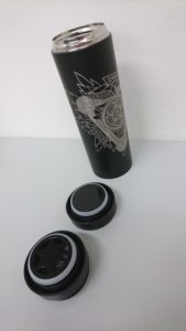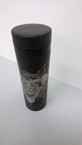堕天使条約機構のエンブレムがレーザーで彫刻された500mLのサーモボトルです!